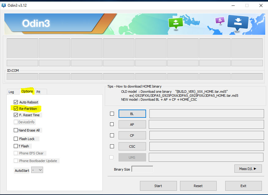 - The next step is to push the recovery (TWRP), the kernel (boot.img) file and the repartitioning file (*.pit) to the phone,