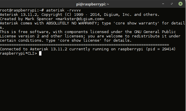 Notre serveur Asterisk tourne sur un RaspberryPI avec la distribution Raspbian.