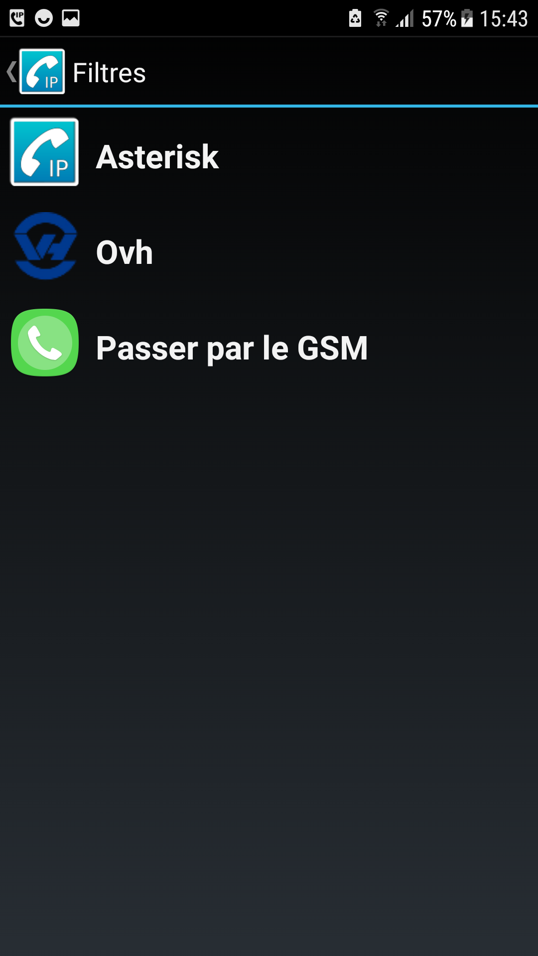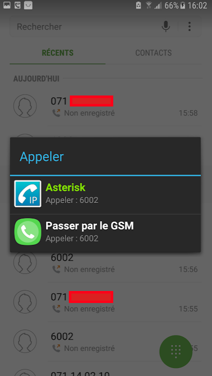 Android ne me demande plus avec quel compte il doit appeler comme la communication ne peut être établie qu’avec le compte Asterisk..