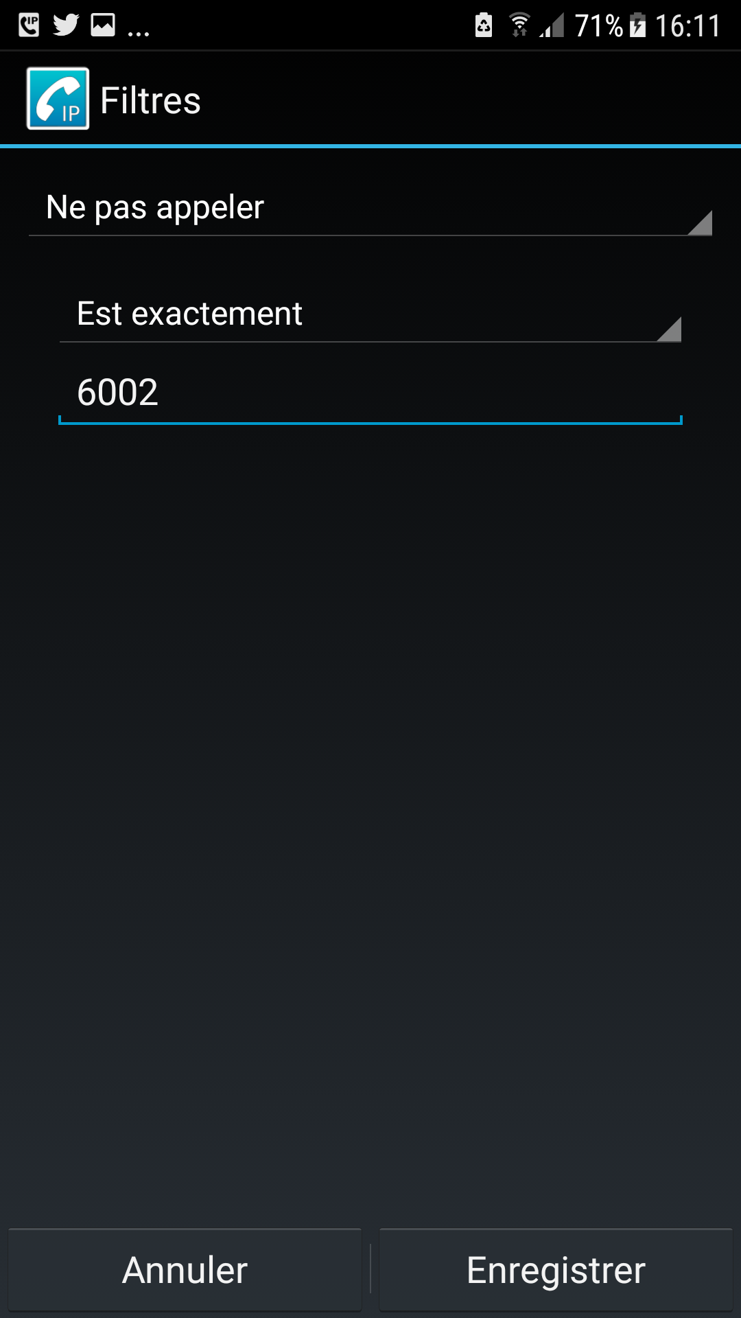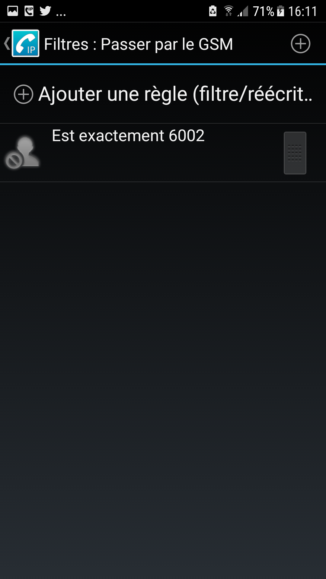 Définissons un filtre pour ne pas appeler 6002 avec le GSM