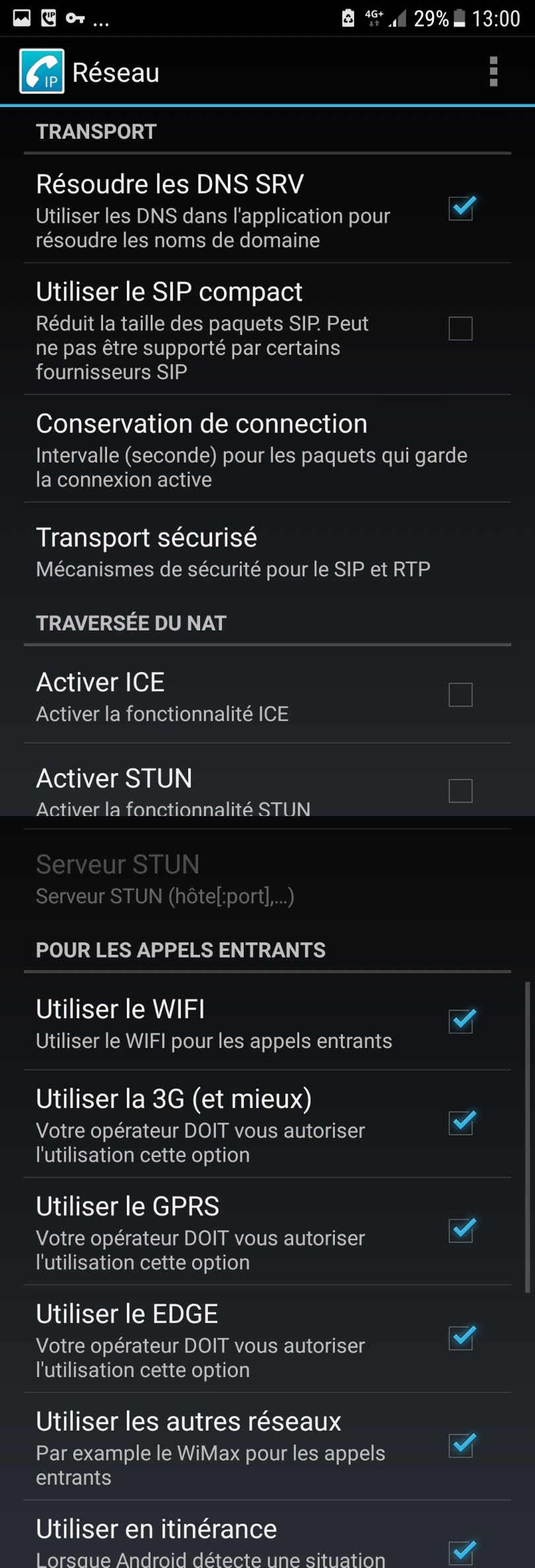 Sur l’image vous pouvez voir que j’utilise une adresse IP locale 192.168.1.8 et le port SIP standard (5060) bien que je sois connecté en 4G.