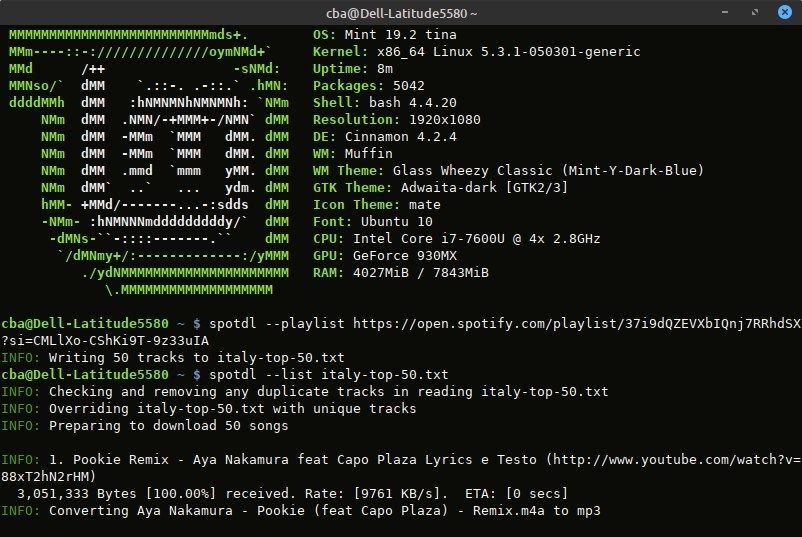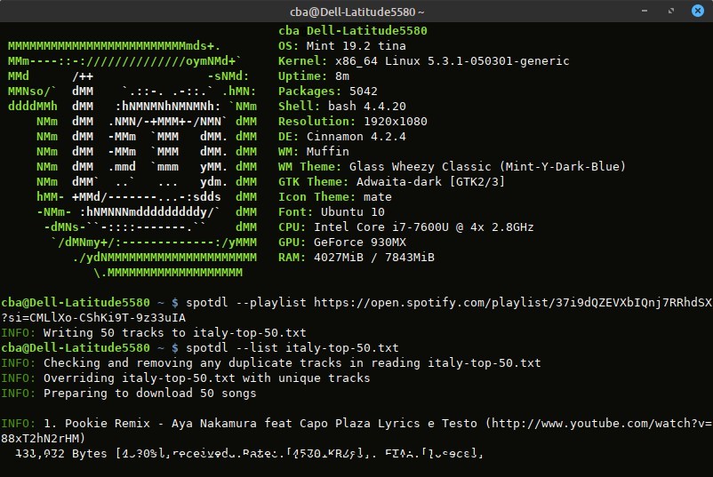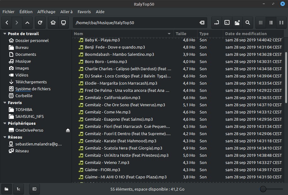 En suivant cet exemple, à la fin du téléchargement, vous retrouvez vos musiques dans le répertoire: ~/Musique/ItalyTop50
