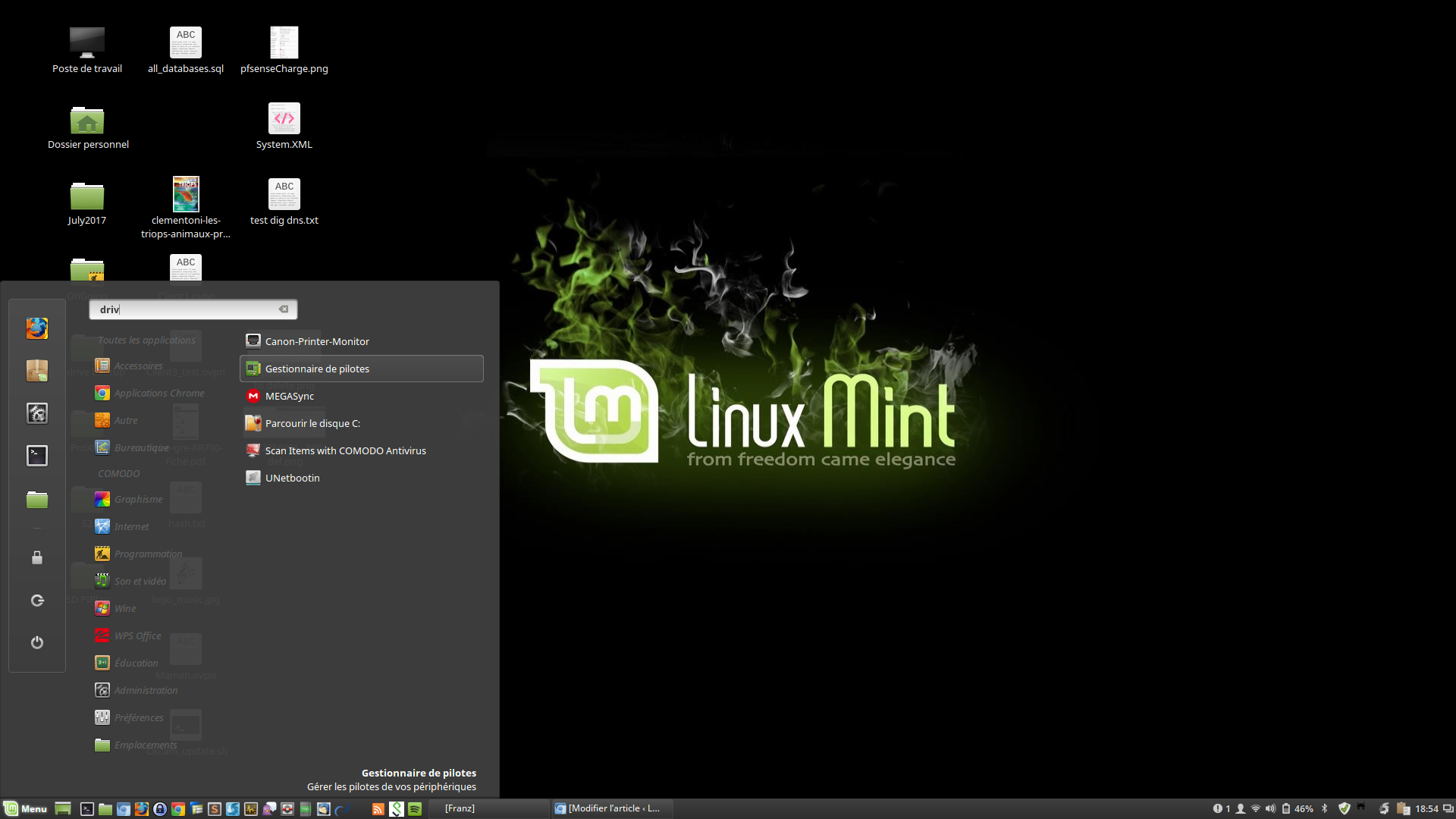 Vous trouverez le gestionnaire des pilotes dans le menu Mint:
